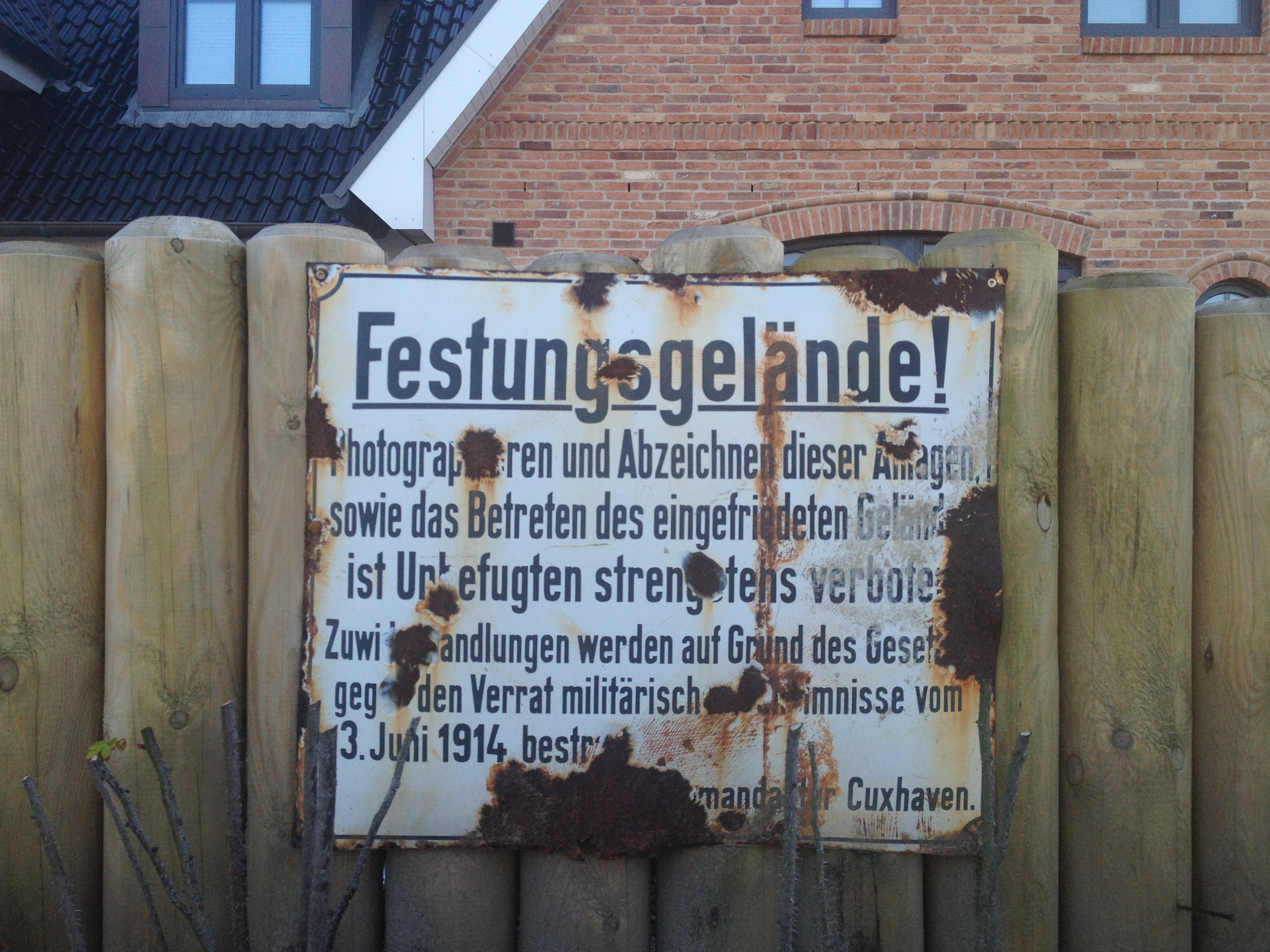 Das kann man komisch finden, oder auch gar nicht: Ein Westerländer Hausbesitzer erklärt sein Heim mit historischer Plakettierung kurzerhand zum „Festungsgelände“, was möglicherweise Bände spricht über sein Verhältnis zum modernem Tourismusgeschäft. (Wehe, einer schwärzt uns an, weil wir das Photographierverbot ignorierten.)